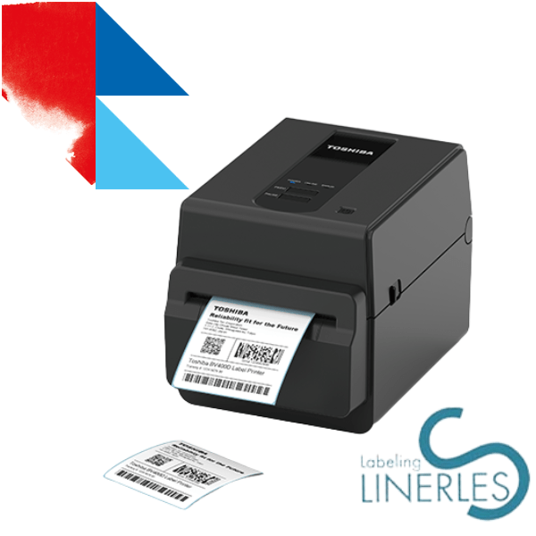 Етикетният ринтер BV420D-GL в комбинация с материалите без подложка на Toshiba.