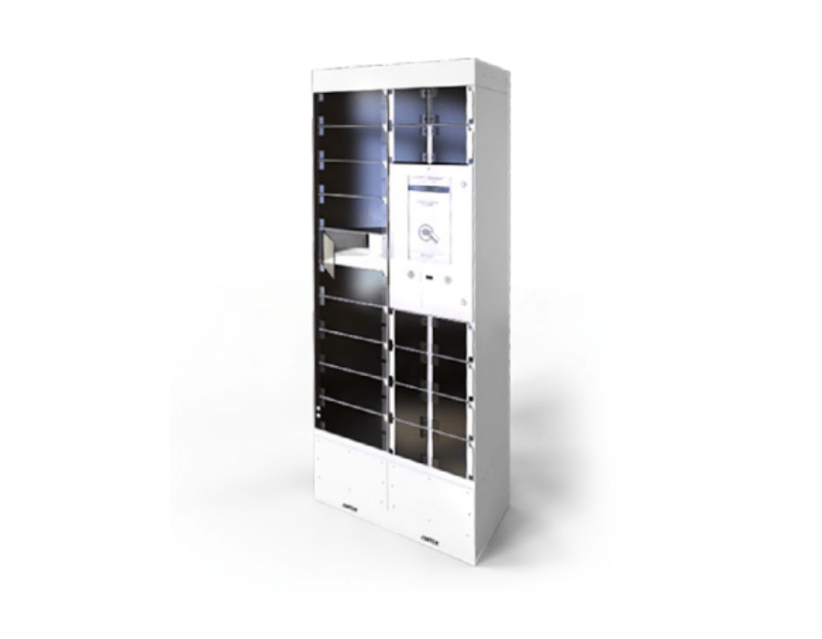 - Разпознаване – За да вземе или върне устройство, потребителят може да бъде идентифициран с баркод и RFID технология или с помощта на ПИН код на сензорния екран.