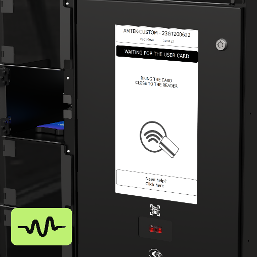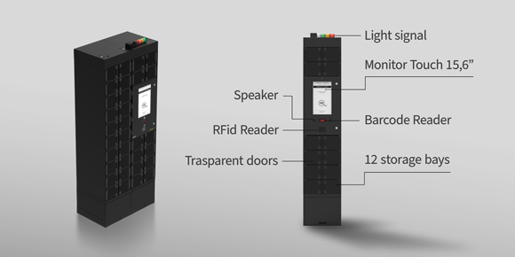 Служителят се идентифицира с баркод, RFID карта или PIN код. Системата отваря правилното шкафче.