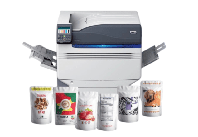 Стандартните цифрови принтери работят с CMYK и произвеждат отлични резултати на бяла хартия. Проблемът идва когато дизайнът изисква нещо повече: печат върху черна крафт хартия, прозрачно фолио, тъмночервен картон или дойпак за кафе.